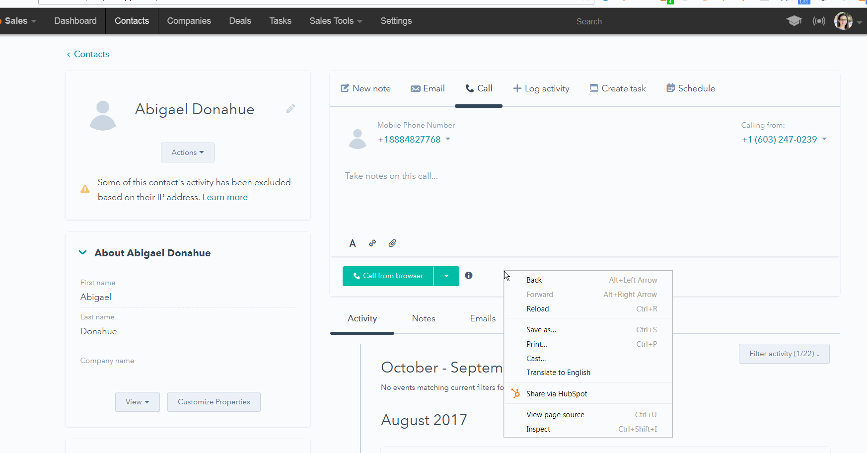 HubSpot works with a third-party service, Twilio, for calling services. Twilio has specific browser and network requirements for the calling tool to function properly.