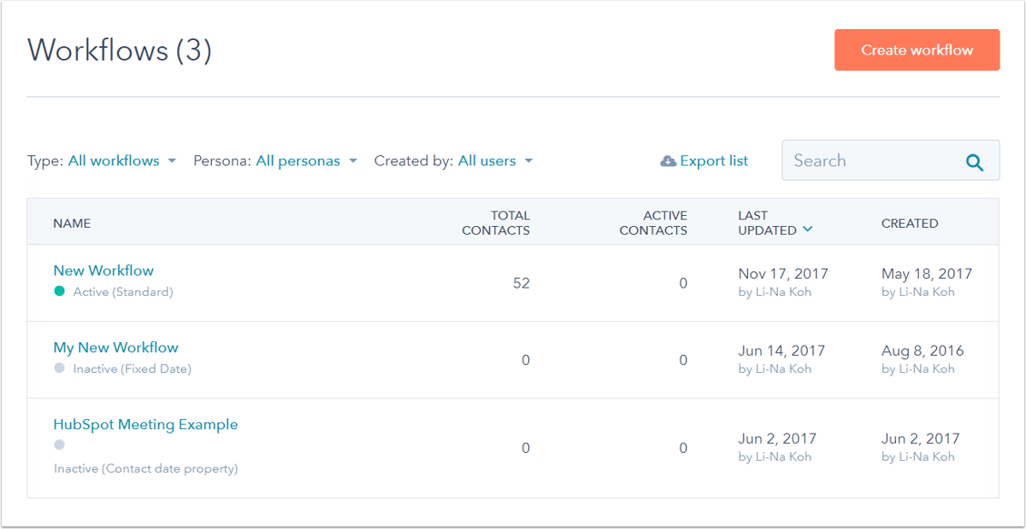 In your HubSpot account, navigate to Automation > Workflows. Once there, click Create workflow.