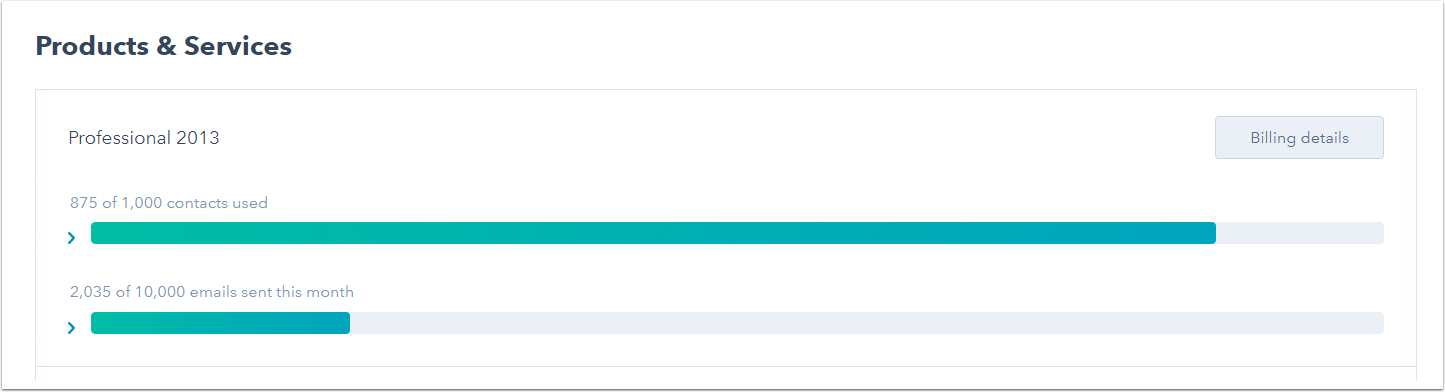 To view subscription and service limits for your paid account:- In your HubSpot account, click your account name in the top right corner, then click Account & Billing.