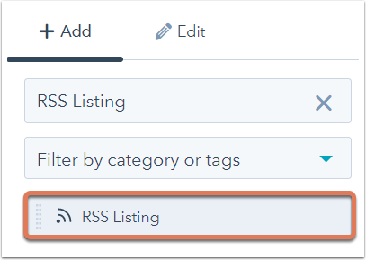 To add a tag-specific stream of recent blog posts to one of your HubSpot website or landing pages, access the page's template to add a RSS Listing module.