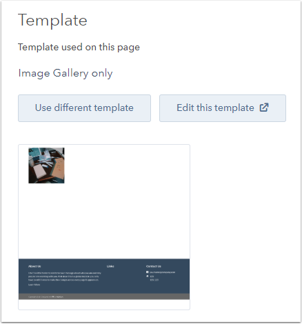 - Template: view the template applied to your page. Click Use different template to apply a new template to your page, or Edit this template to edit your template.