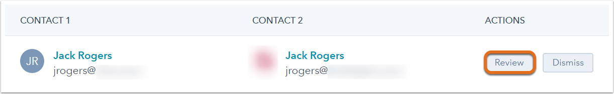 - After analyzing the records, select the contact or company you want to keep, then click Merge. Learn more about merging contacts or companies in HubSpot.