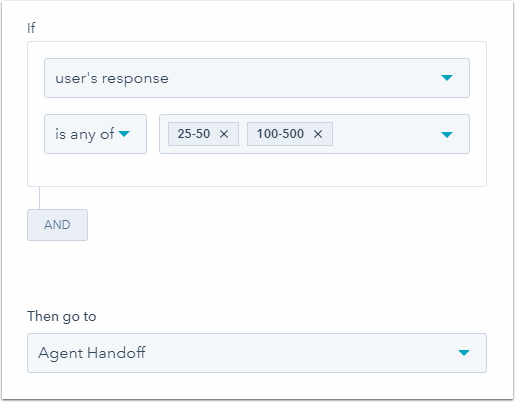 Remarque :Les utilisateurs Hub Sales Starter, Hub Services Starter, Hub Marketing Starter et gratuits ne peuvent pas ajouter de conditions personnalisées au flux de conversation du bot.
