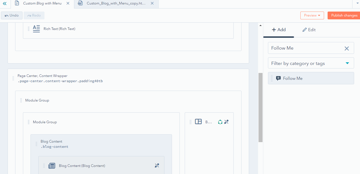 Ajouter le module Suivez-moi à un modèle HubSpot