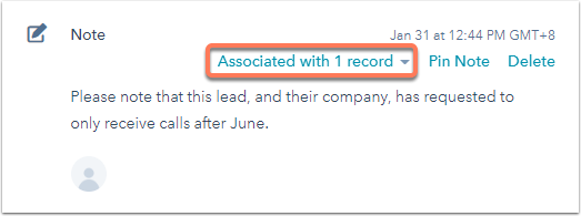 Les activités dans la chronologie d'une fiche d'informations peuvent être associées à d'autres fiches d'informations. Lorsqu'une activité est associée à une autre fiche d’informations, la même activité apparaîtra également dans la chronologie de sa fiche d'informations.