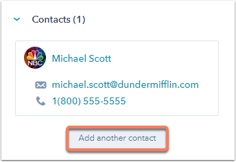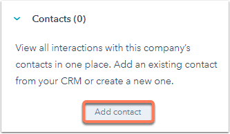 - Dans le panneau de droite, section Contacts, cliquez sur Ajouter un contact ou, si certains de vos contacts existants sont déjà associés à l'entreprise, cliquez sur Ajouter un autre contact.