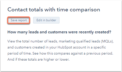 La bibliothèque de rapports de HubSpot contient des rapports standard que vous pouvez enregistrer dans votre liste de rapports ou ajouter à vos tableaux de bord. Ces rapports couvrent de nombreux sujets différents tels que la performance des sites web ou les indicateurs de ventes.