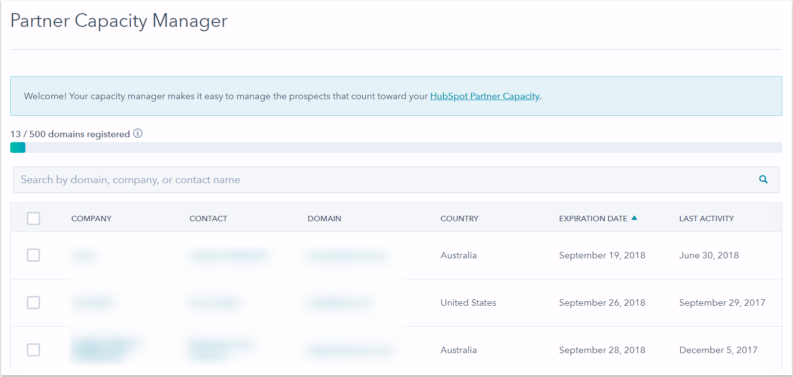 Capacity limits will be strictly enforced once it is available in your HubSpot Partner account. This means you will be prevented from registering new leads/prospects with HubSpot if you have reached your capacity limit. You can maintain your capacity by deregistering leads/prospects in the capacity manager.