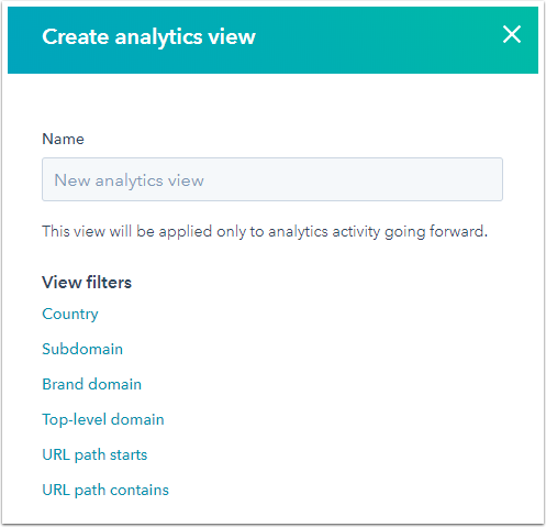 Marketing Hub Professional or Enterprise accounts can create analytics views based on your domains, visitor country, and more. A user can create up to 25 custom views.