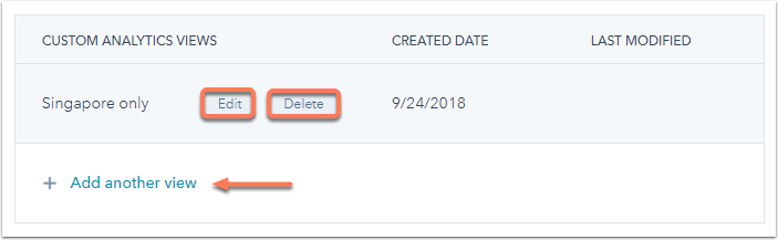 - Click the Analytics views tab. You can see your existing custom analytics views in the Custom analytics views table.