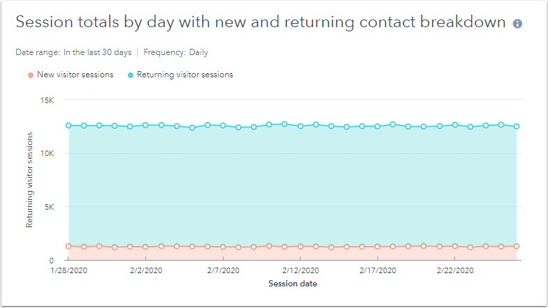 This report shows you the total number of sessions each day, breaking down the sessions into new visitors or returning visitors.