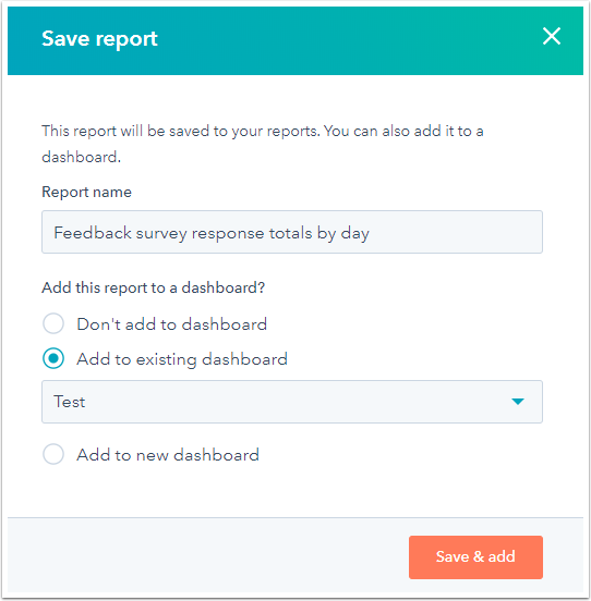 - Click Save if you're adding it to your reports list, or Save & add if you're adding it to a dashboard.