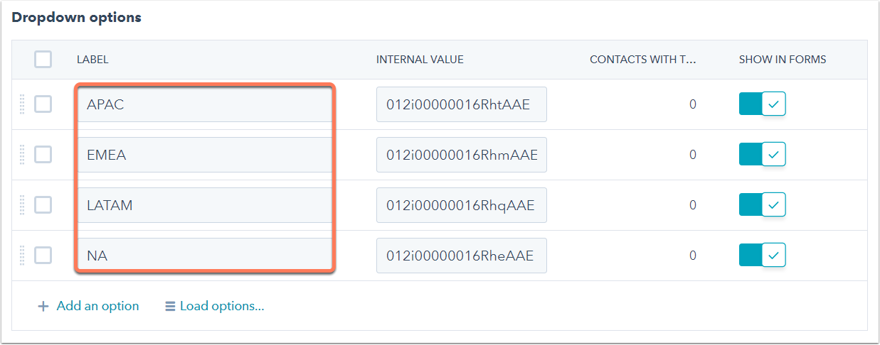 Please note: this method requires ongoing maintenance. If a new value is added to the Salesforce reference field, the label of the corresponding option in the HubSpot property must be manually edited following the steps above.