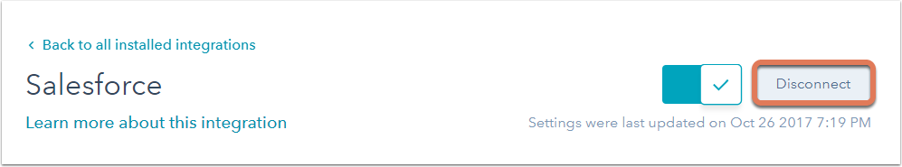 Disconnect the Salesforce integration in HubSpot