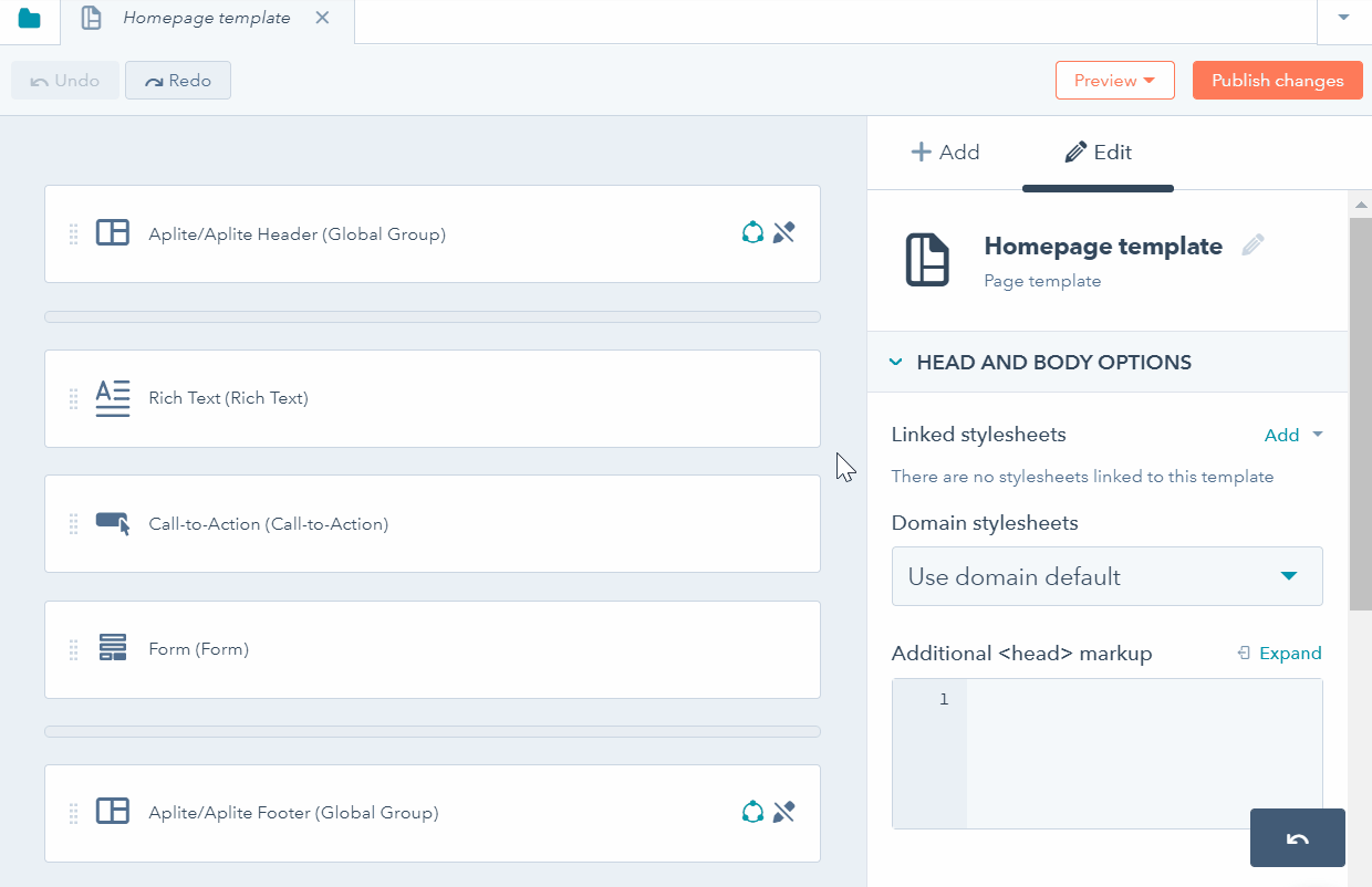 By using the layout editor in the design manager, you can quickly build your content layout without having to write any HTML.