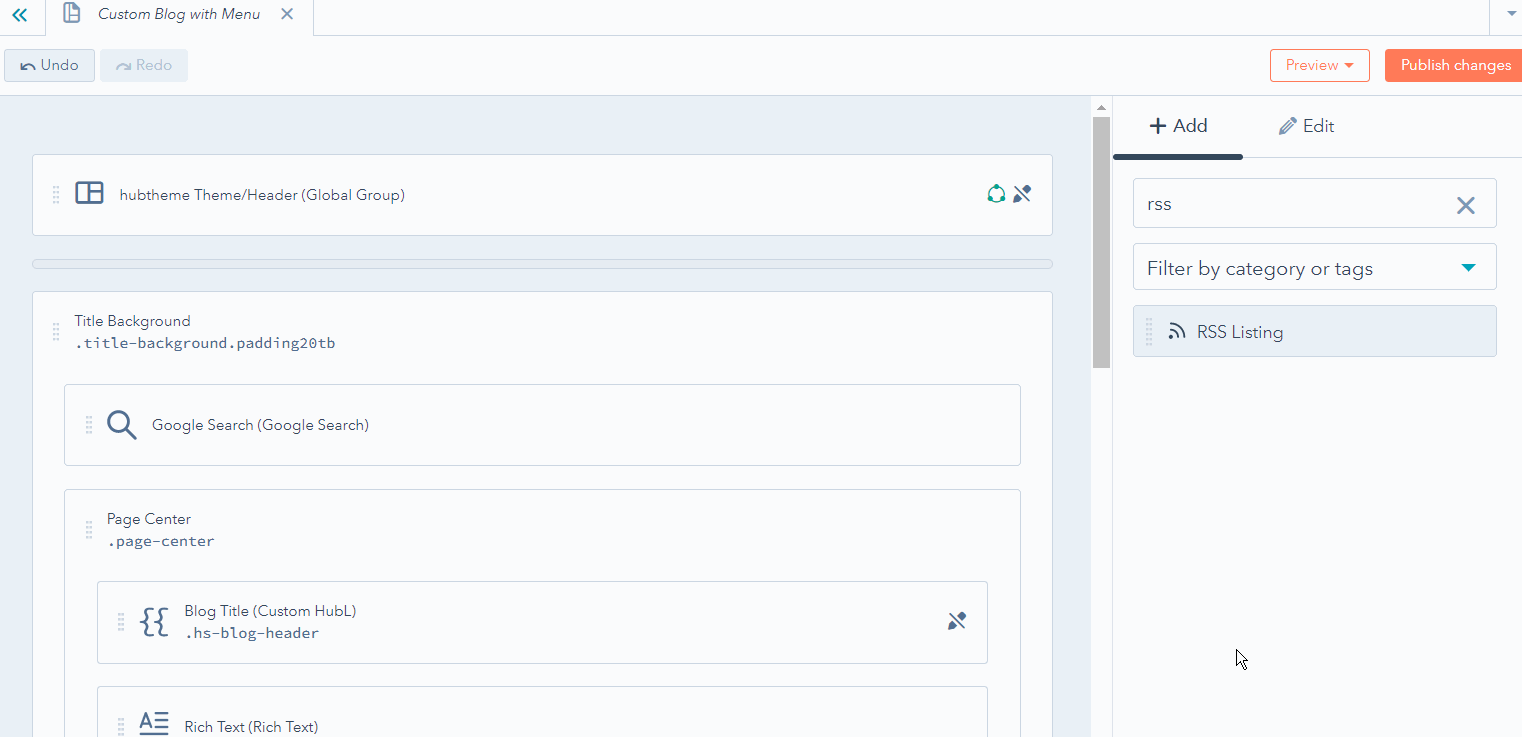 Add an RSS feed to your HubSpot page or blog template