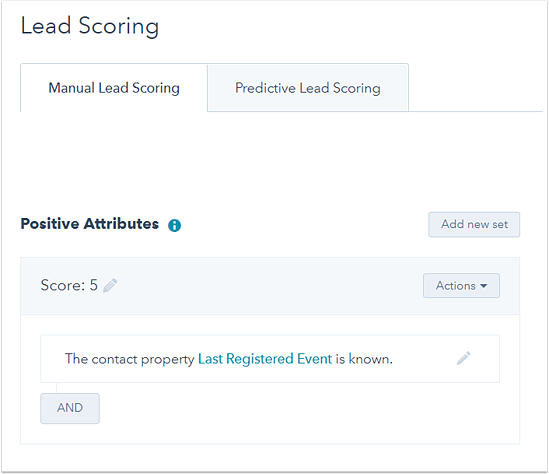 You can also set rules based on Eventbrite properties in manual lead scoring.
