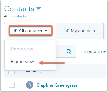 - If you want to export records that meet a certain criteria that isn't saved as an existing view, you need to filter your contacts and save it as a view first.