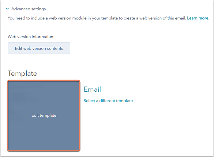 - To edit the text that appears in the email that directs recipients to the web version of the email, click Edit web version contents. The email template will open in the design manager in a new browser tab or window. In the template editor, click the View As Web Page module and edit the Default content in the module inspector.