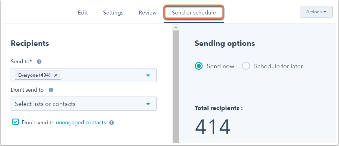 - In the right sidebar, choose a sending option and see how many contacts will receive your email: