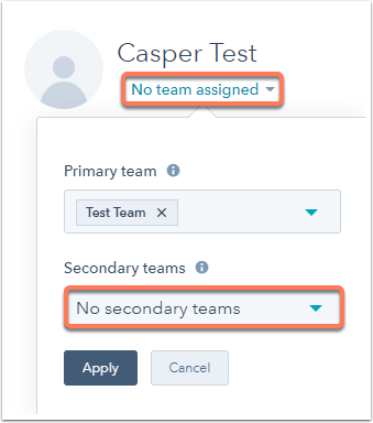 Remarque : le fait d'être membre d'une autre équipe permet à l'utilisateur d'accéder aux fiches d'informations de cette équipe. Cependant, cet utilisateur ne sera inclus dans aucun rapport d'équipe, aucune règle de transfert (par exemple, les règles de transfert des conversations) ou aucune notification d'équipe (par exemple, les notifications par e-mail de soumission de formulaire envoyées à une équipe).