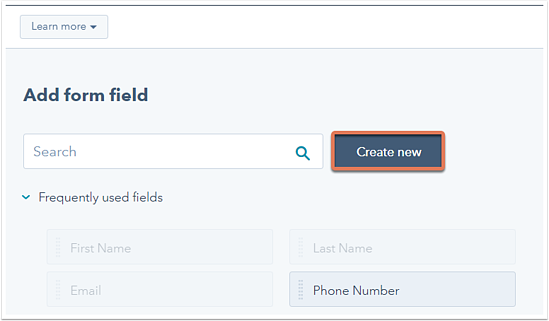 - Dans le panneau de gauche, sous Ajouter un champ de formulaire, cliquez sur Créer un nouveau.
