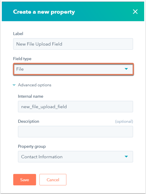 - Cliquez sur le menu déroulant Type de champ et sélectionnez Fichier.