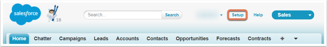 - Dans votre compte Salesforce, cliquez sur Configuration dans le coin supérieur droit.
