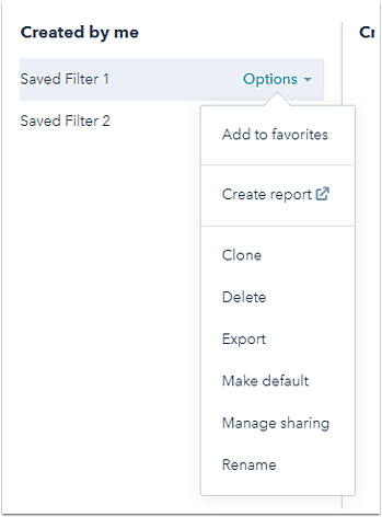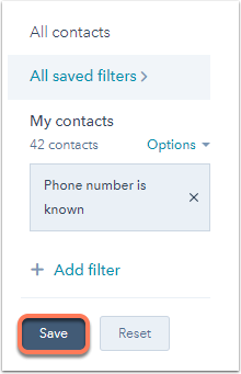 - Définir par défaut : définissez le filtre enregistré actuel comme filtre par défaut lorsque vous accédez à Contacts.