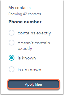Consultez vos contacts, entreprises, transactions ou tickets présentant des caractéristiques spécifiques. Les filtres enregistrés personnalisés vous permettent de voir rapidement et simplement quels contacts, entreprises, transactions et tickets répondent aux critères que vous avez définis.