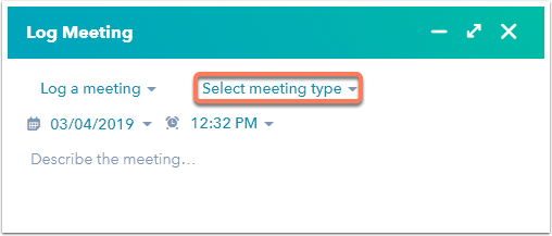 - Sélectionner un type d'appel ou de rendez-vous sur un contact, une entreprise ou une transaction