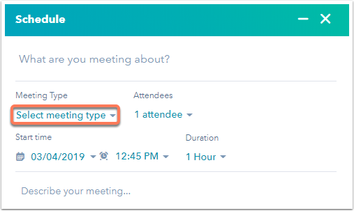- Lorsque vous planifiez un rendez-vous avec un contact, cliquez sur le menu déroulant Sélectionner le type de rendez-vous pour sélectionner le type de rendez-vous.