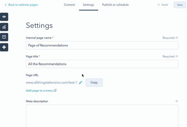 Suivez les instructions ci-dessous pour modifier l'URL d'une de vos pages ou de vos articles de blog HubSpot :