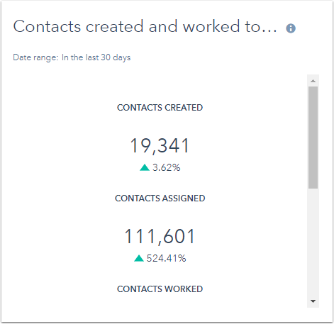 - le nombre de contacts ayant travaillé (c'est-à-dire avec un appel, un e-mail ou une réunion dans la chronologie du contact dans la plage de dates) ;