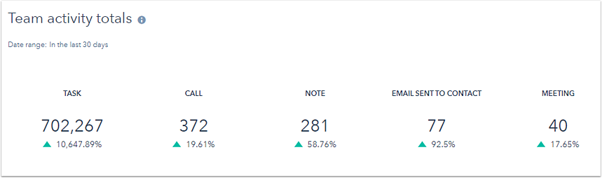 Ce rapport indique l'activité de votre équipe en fonction des activités qu'elle a enregistrées dans la chronologie des contacts :