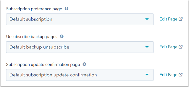 - Page de désabonnement : cette page est chargée pour les visiteurs qui ne sont pas reconnus dans votre base de contacts dans HubSpot au moment de leur visite et permet aux visiteurs de saisir manuellement leurs informations pour se désabonner de futures communications par e-mail.