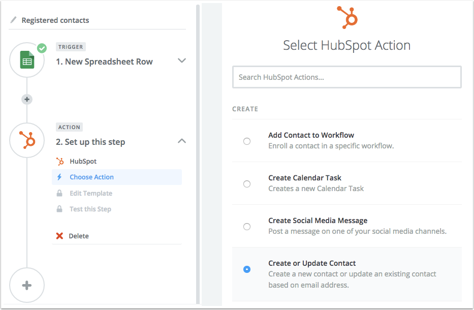 Zapier connecte HubSpot à plus de 1 400 applications en utilisant des déclencheurs et des actions pour automatiser les tâches entre HubSpot et d'autres applications. Par exemple, lorsqu'il existe un nouveau contact dans HubSpot (déclencheur), vous pouvez ajouter le contact à une feuille de calcul Google (action) en utilisant Zapier.