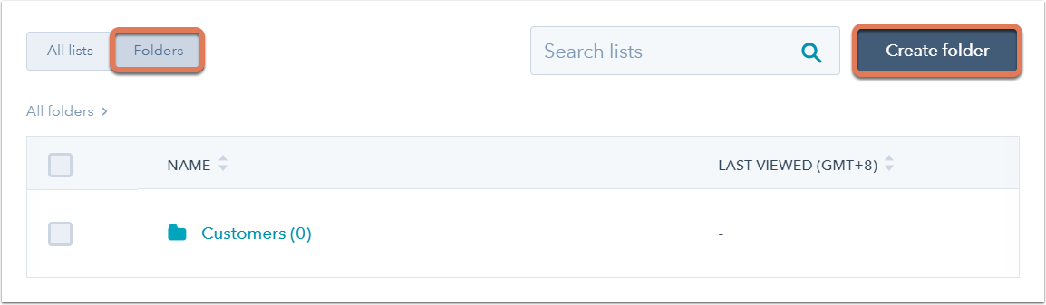 Pour déplacer des listes dans un dossier, retournez dans l'onglet Toutes les listes. Sélectionnez la case à côté des listes à déplacer, puis cliquez sur Déplacer vers le dossier en haut du tableau.