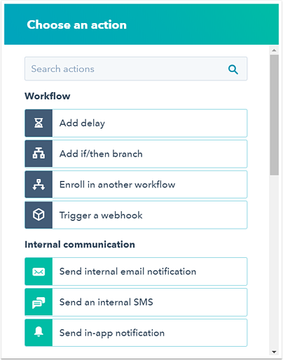- In the right panel, select an action. Learn more about choosing your workflow actions.