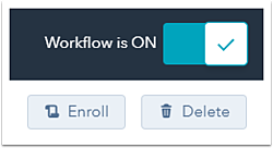 When a workflow is turned off, objects that meet the enrollment triggers will not be enrolled in the workflow. Objects that are currently enrolled in the workflow will stay enrolled. Actions, if/then branches, delays, and scheduled actions will work as follows: